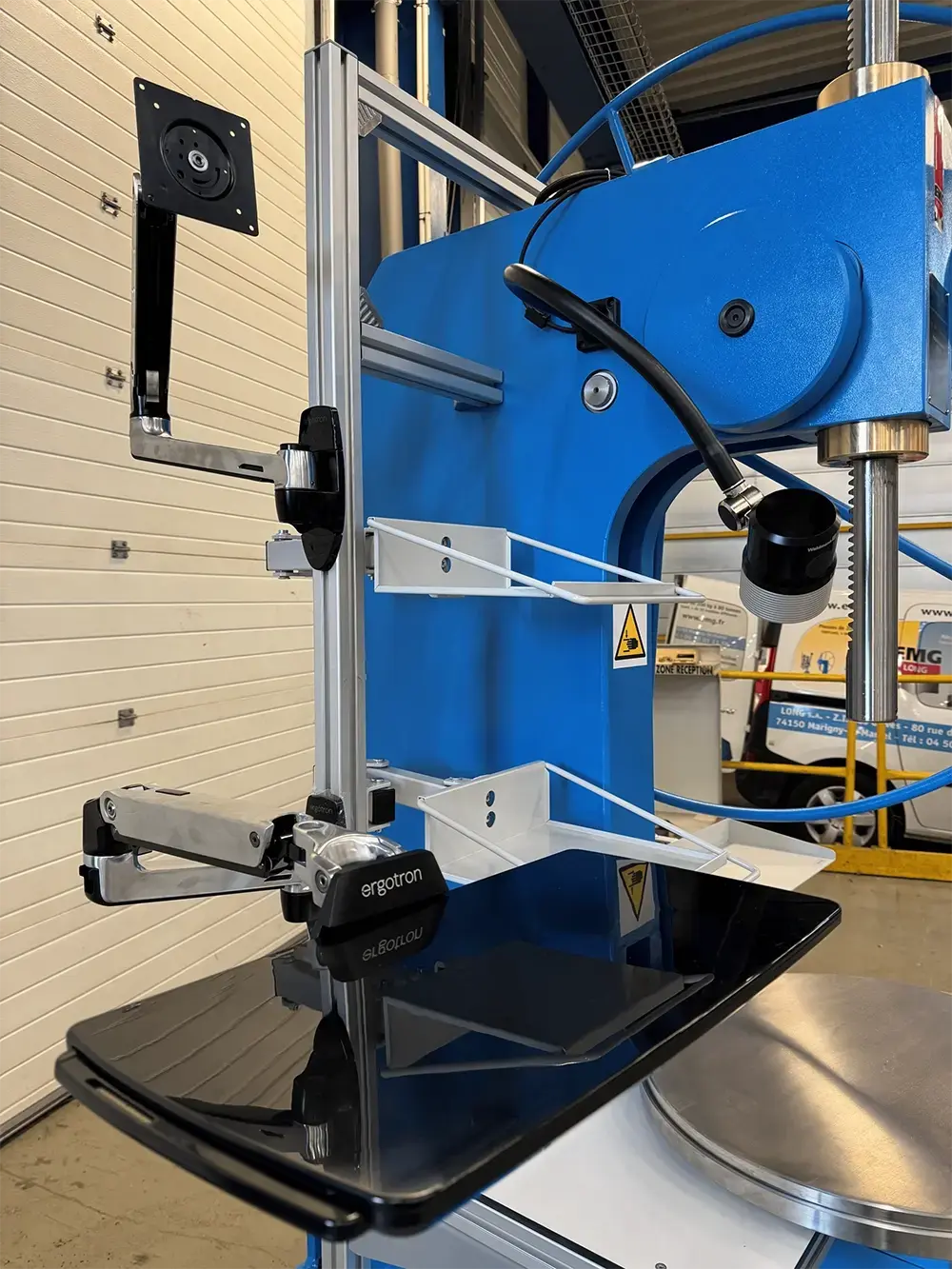 - Un plateau réglable en hauteur pour s’adapter à différentes dimensions de pièces et aux différents opérateurs.